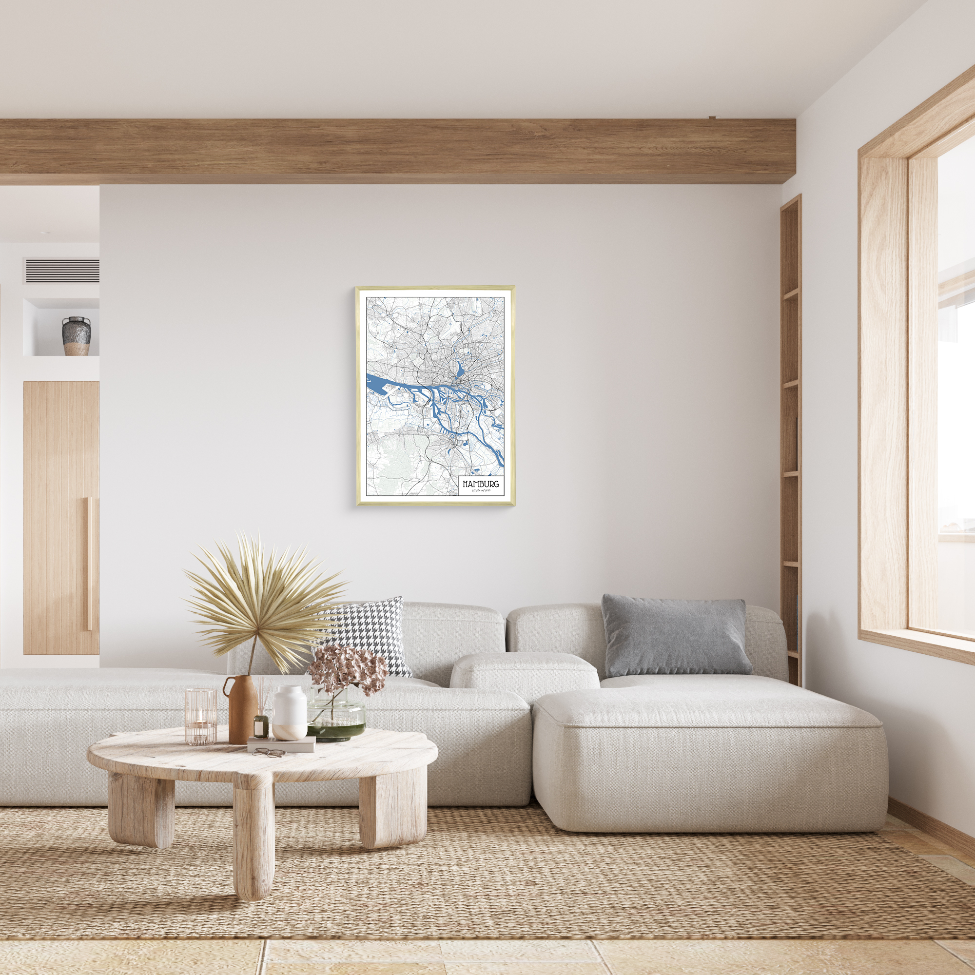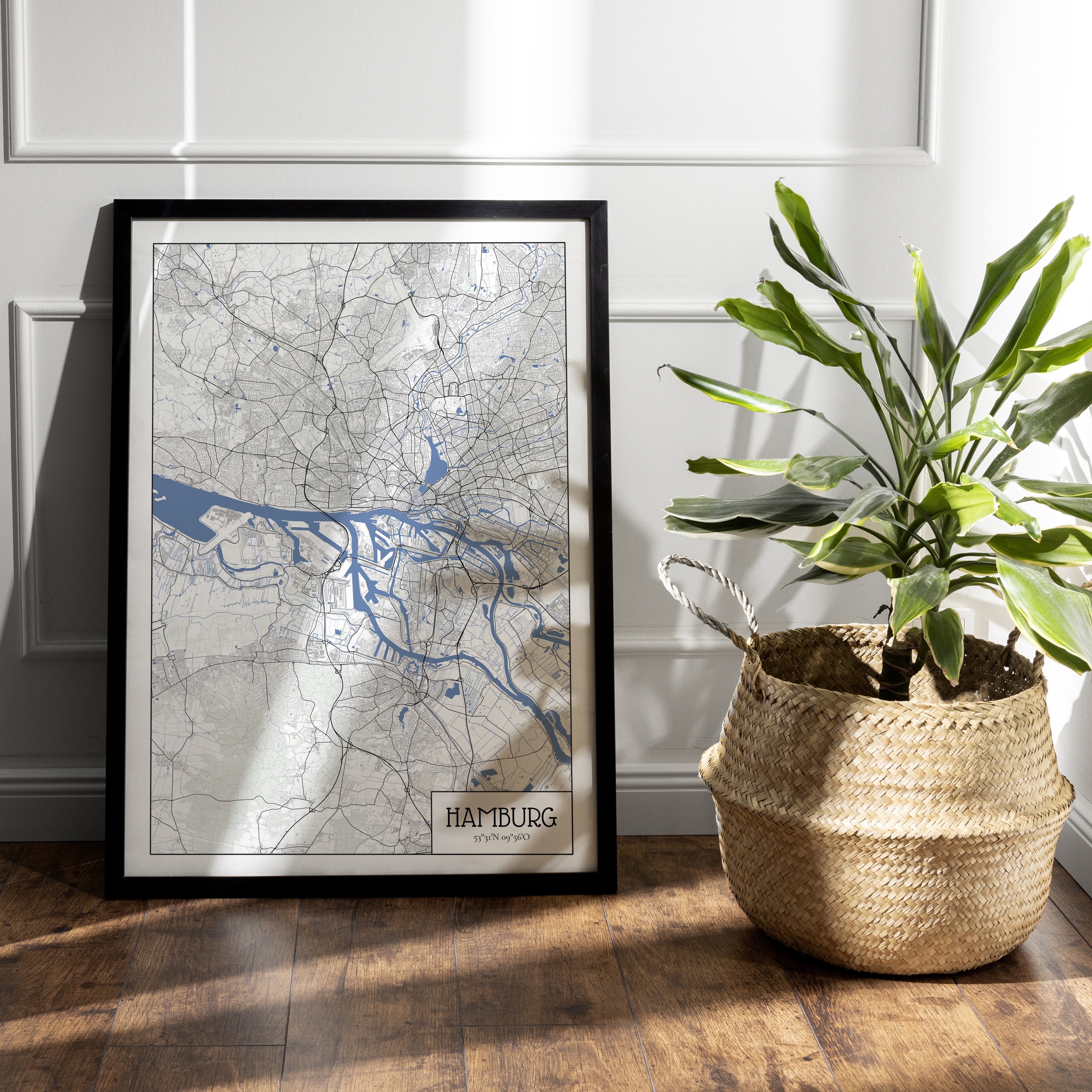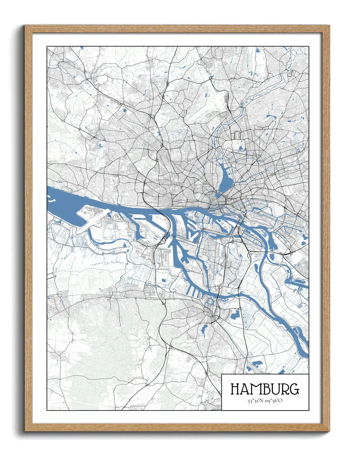 Erstelle deine persönliche Stadtkarte von jedem Ort: Hamburg im Architek-Stil; Druck auf Poster, gerahmt, Leinwand, Acryl oder Alu-Dibond